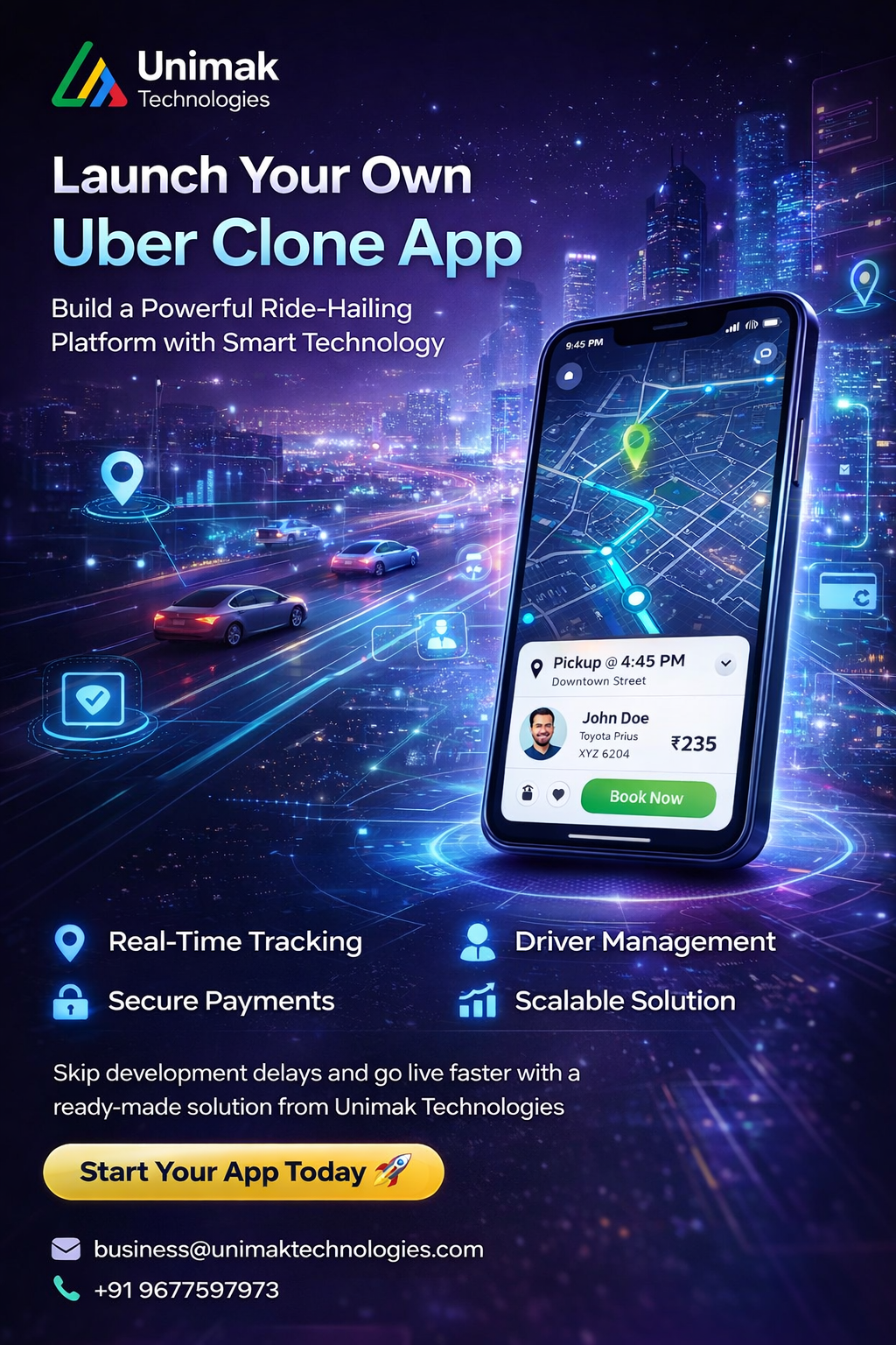 Partner with Unimak Technologies and transform your taxi service with our industry-leading Uber Clone App, White Label Taxi Booking App, Taxi Dispatch Software, and On-demand Taxi App solutions.