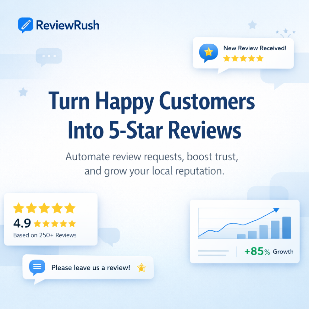 With ReviewsRush.com, managing reviews becomes easy, helping businesses focus more on delivering great service.