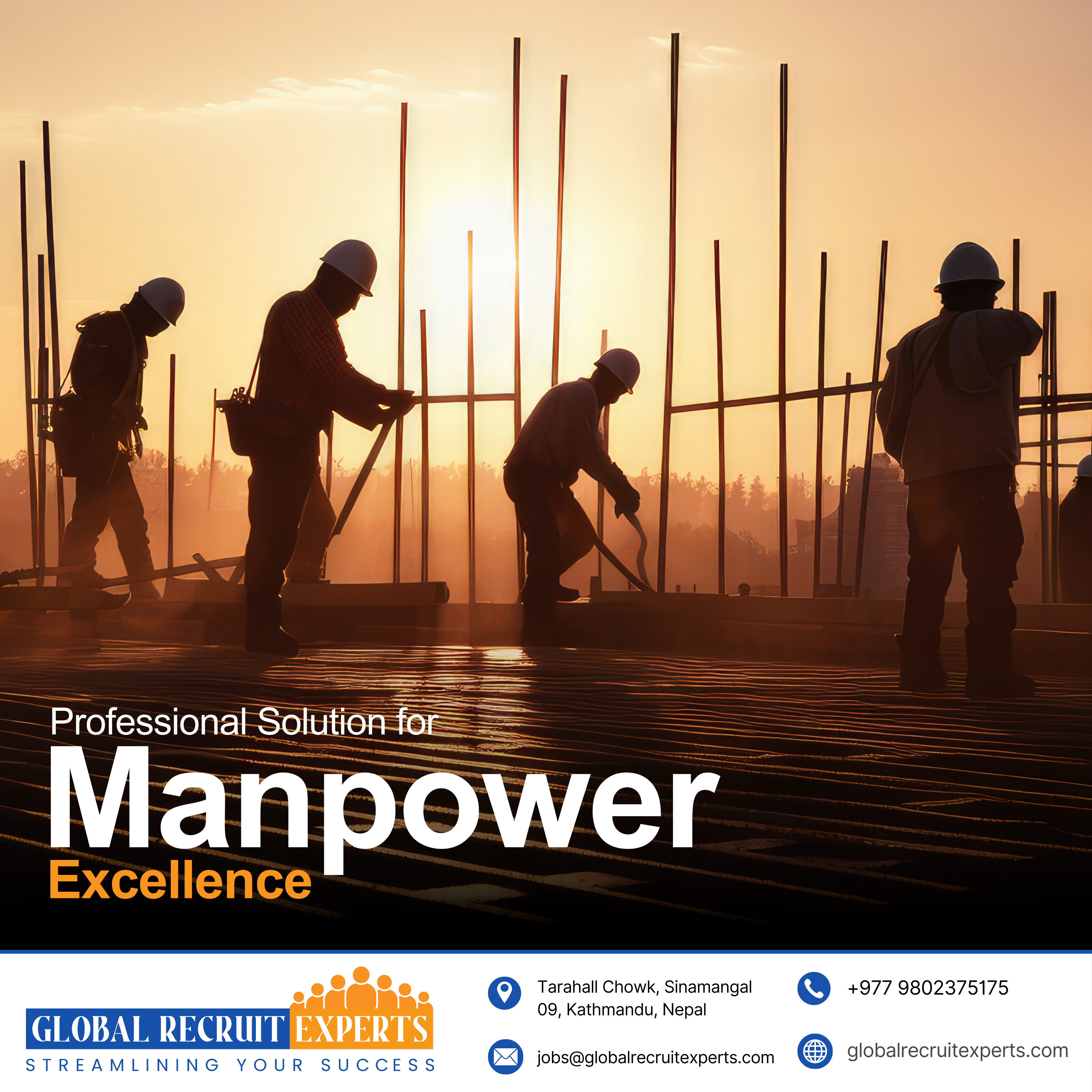 Global Recruit Experts is a leading manpower agency based in Nepal, specializing in connecting skilled professionals with global opportunities. We cater to diverse industries including Construction, Energy, Hospitality, Healthcare, Automotive, and more.